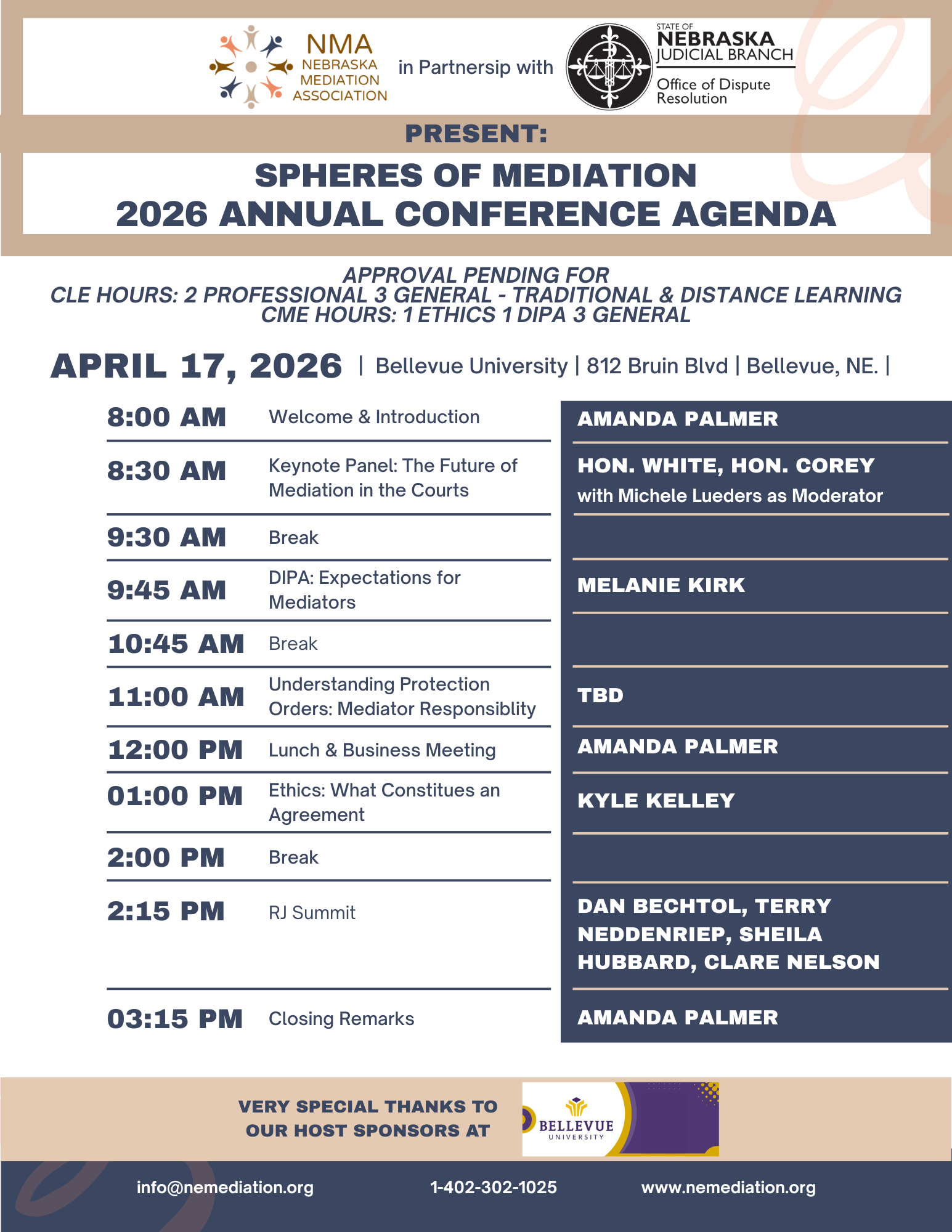 Are you or someone you know a good fit to join the Nebraska Mediation Association Board to help shape the organization and the impact of mediation across Nebraska? Please fill out the Board Election Nominee form and continue to support positive change in our great state.